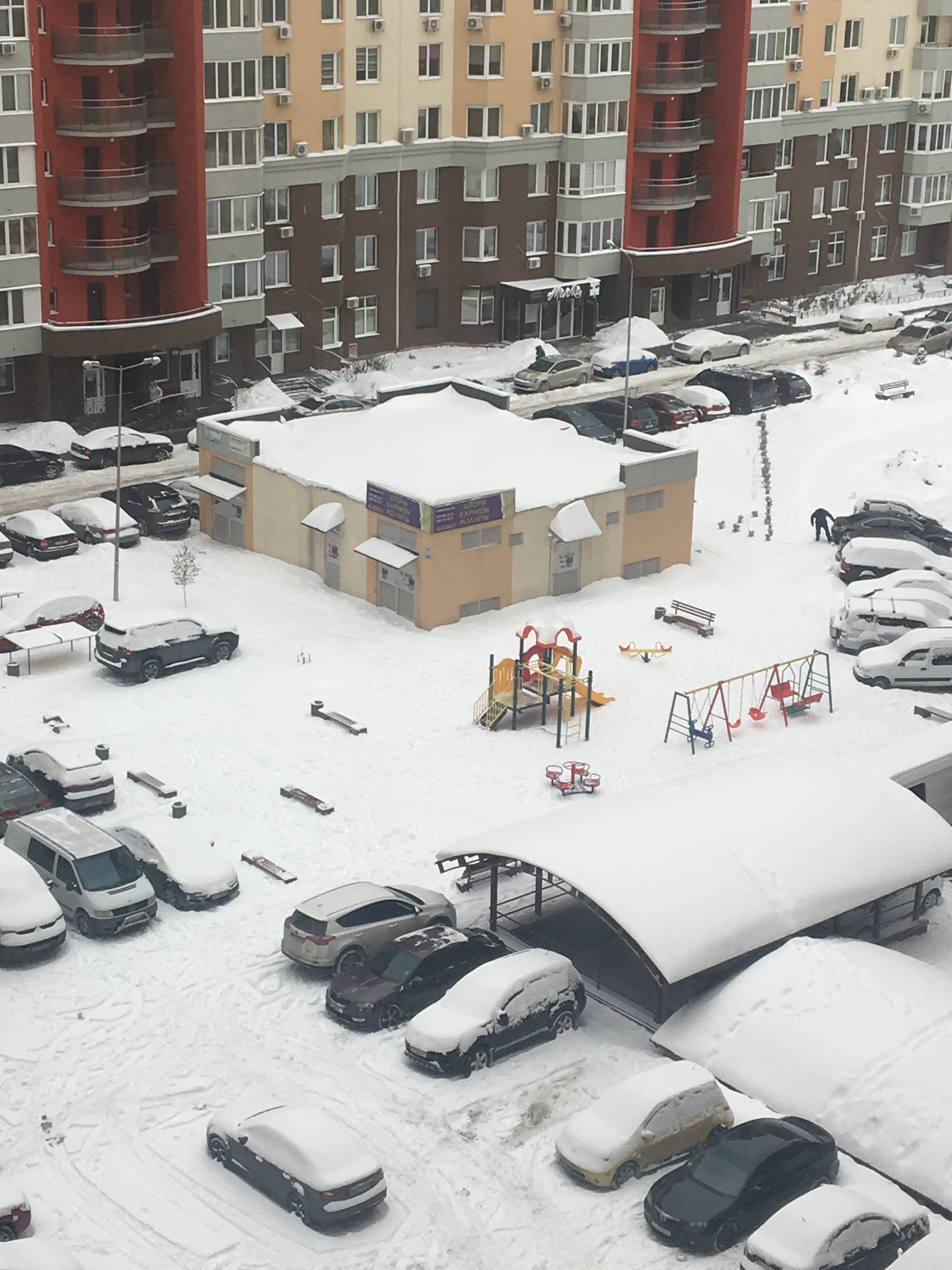 Дивлюся у двір, а там: щільно запарковані машини довкола малюсінького дитячого майданчику. Його відчайдушно боронять від наступу колес лавки. Зачіпати у пості тему про парковочні війни не хочу, тому скажу коротко: прибрати машини геть з території можливості поки немає, але щоб ви розуміли, то не парковка, а облицьована плиткою зона відпочинку.