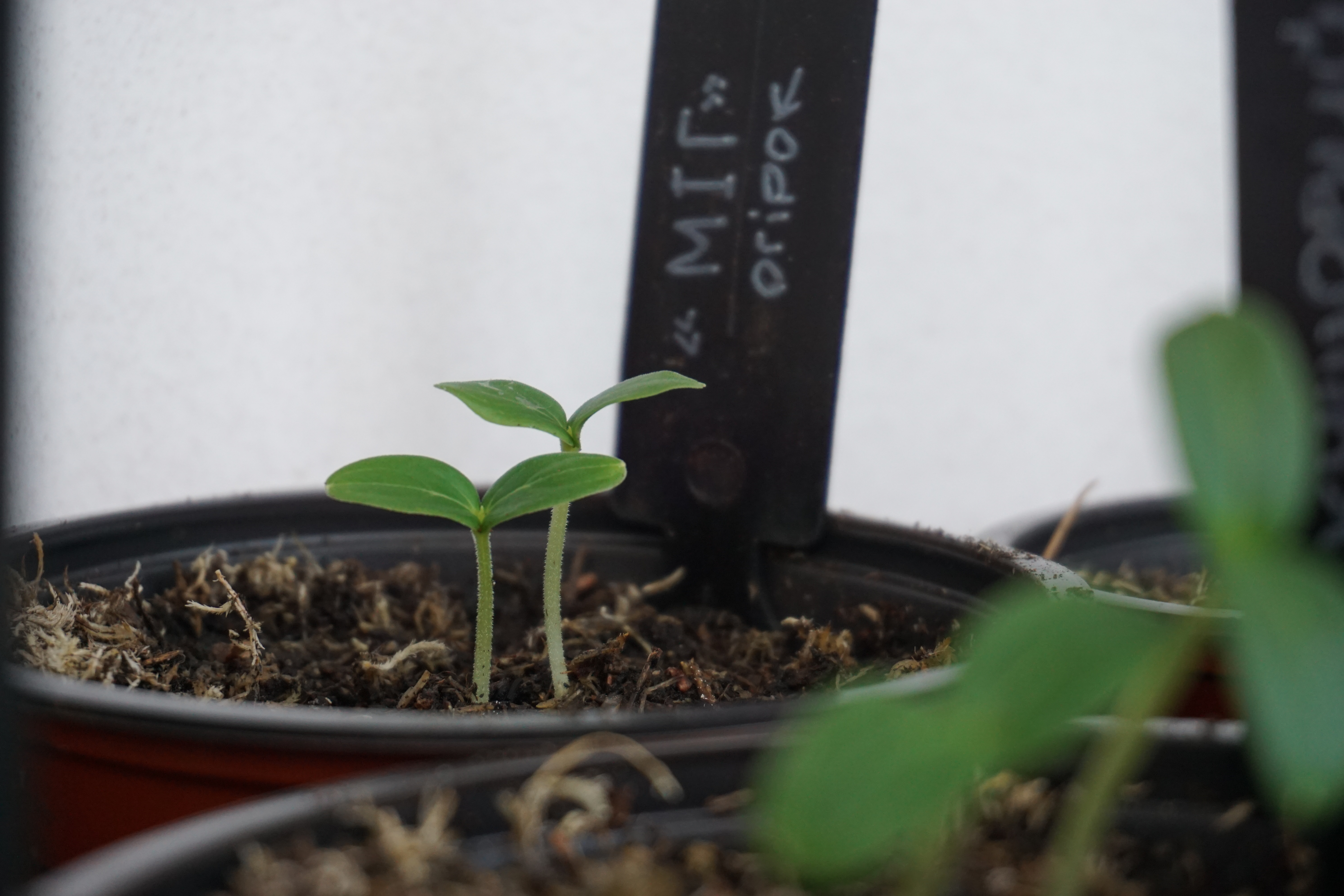 На томатах почав з’являтися перший справжній листок. Наступного тижня вже про них детальніше, коли сходи переїдуть в більші контейнери.