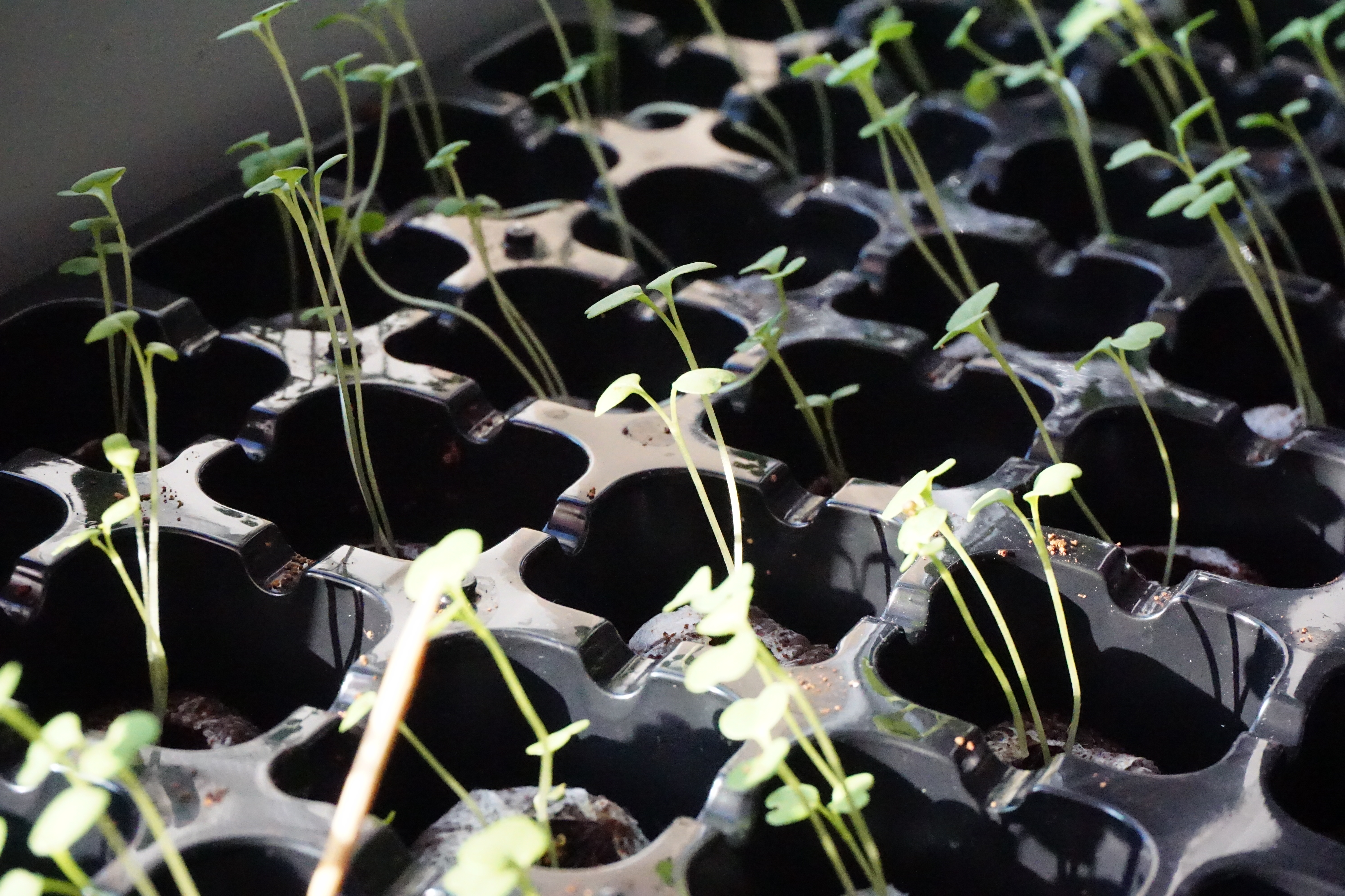 А от редиска… Ох ці люди! скажуть, що буде у затінку рости, а та редиска витягнулася (журюся). Чи буде з неї толк? Тому встромила де-не-де по насінині з надією, що за нових умов рослинка буде розвиватися краще.