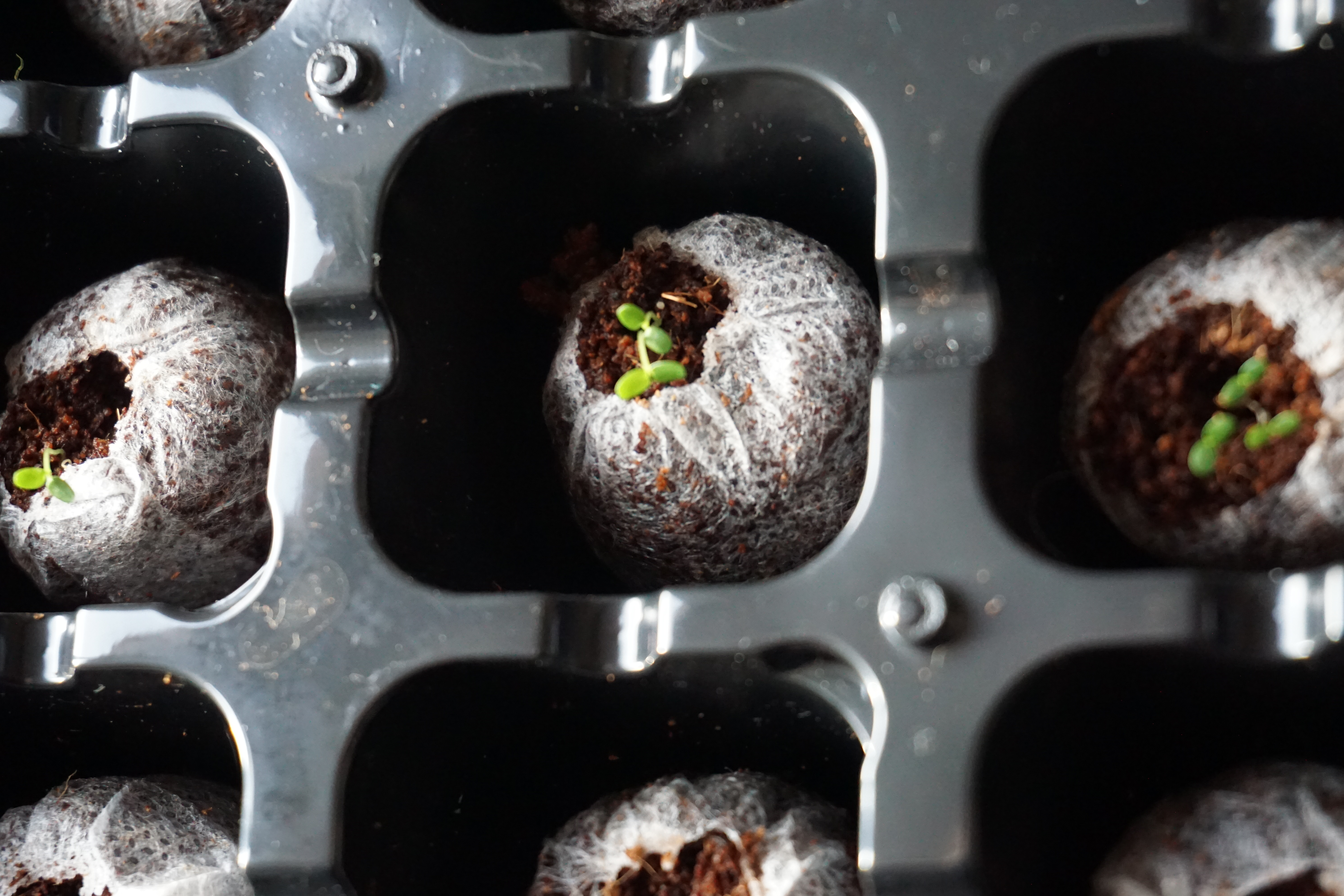 Розмарин перемістився рости в таблетки – мала сумніви щодо життєздатності сходів. Думаю, що наступного разу висаджувала б відразу в горщик. Тепер вже доведеться трохи зачекати поки з’являться справжні листочки.